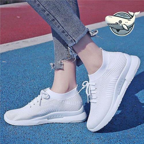 [에이치플러스몰]데일리 화이트 슬립온 니트 운동화 여성용