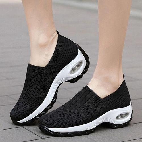 [에이치플러스몰]여성 에어 슬립온 블랙화이트 1P 데일리 니트 운동화