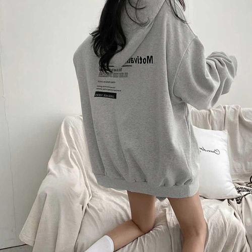 [신상오픈런]여성용 겨울 후드 티셔츠 회색 포켓 자수 캠퍼스 스타일