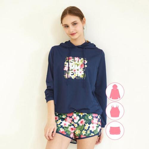 [베이직엘르]베이직엘르 여성인 후드 집업 래쉬가드 비치반바지 세트 BEL-X215K