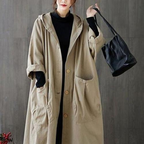 [에이치플러스몰]오버핏 베이직 빅사이즈 후드 롱 올데이 코트 야상 점