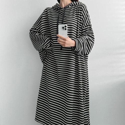 [다잇템]여자 줄무늬 후디 콘트라스트 코튼 롱원피스