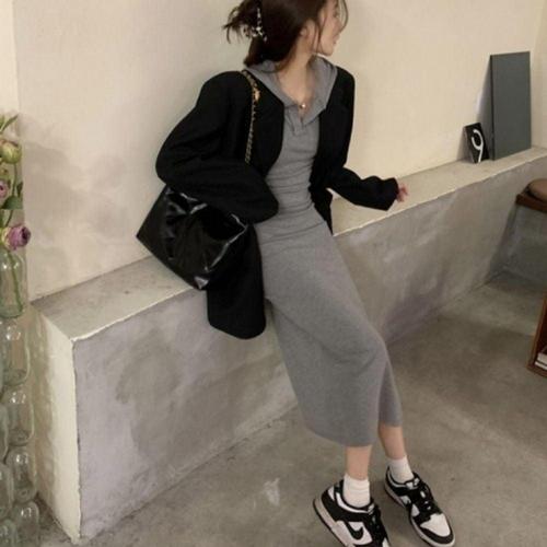 후드집업 니트 단가라 롱원피스 캐주얼 원피스 라운드 오픈가디건 여자옷 롱