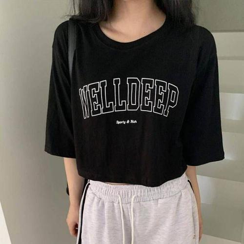 [에이치플러스몰]크롭 크롭맨투맨 반팔 후드집업 티셔츠 라운드넥