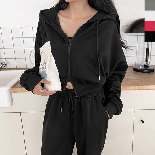 [에이치플러스몰]벨벳 후드집업 밴딩 와이드팬츠 트레이닝 셋업 실내외