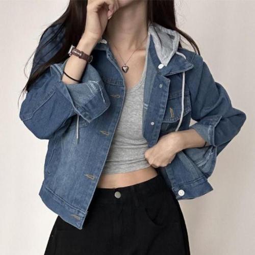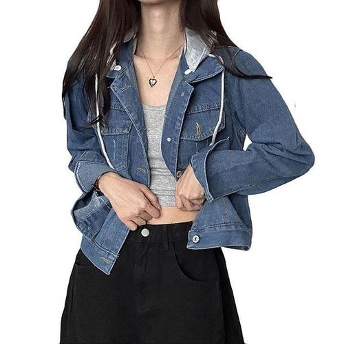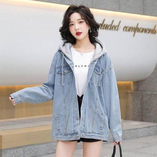 촹싱유푸이 가을 프리오더 캐주얼 워싱 청자켓 여성 탈부착후드 데님 재킷 봄 쟈켓 점퍼 데님코트