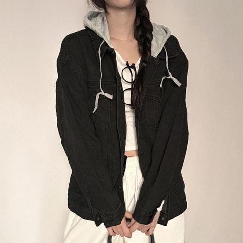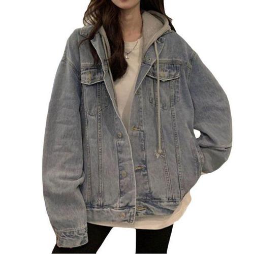 빈티지 데님 재킷 여성 봄 가을 코트 찢어진 후드 아우터 2025 윈드브레이커 베이직 코트 남자친구 여성 청자켓
