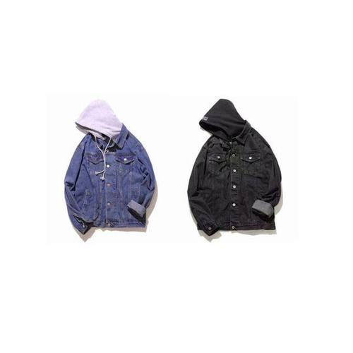 [에이치플러스몰]후드 탈부착 데님 청자켓 기본핏 외투 스타일링 학생