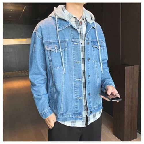 [에이치플러스몰]남성 데님 청자켓 후드 학생옷 캐주얼 여행 패션 코디