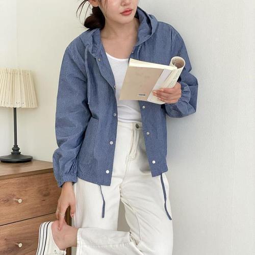청카바 여성 외투 캐주얼 자켓 코디 데님 후드 아우터