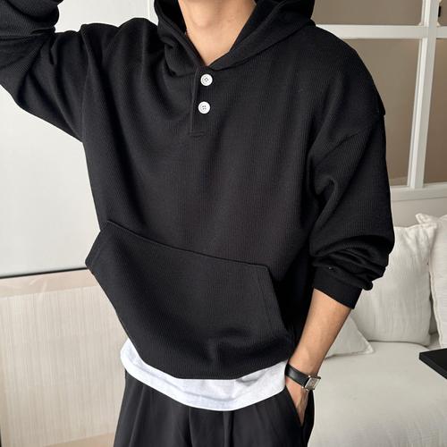 [아레스][700장돌파] 헨리 2버튼 골지 크롭 니트 후드티