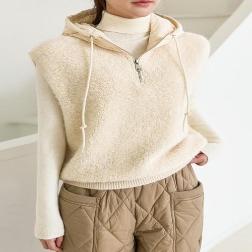 [WPBG]패딩 후드 부클 반집업 니트 베스트_3color