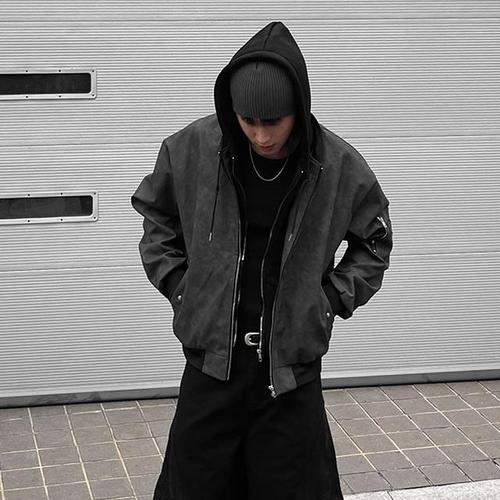[히코튼]레더 후드 레이어드 항공 점퍼