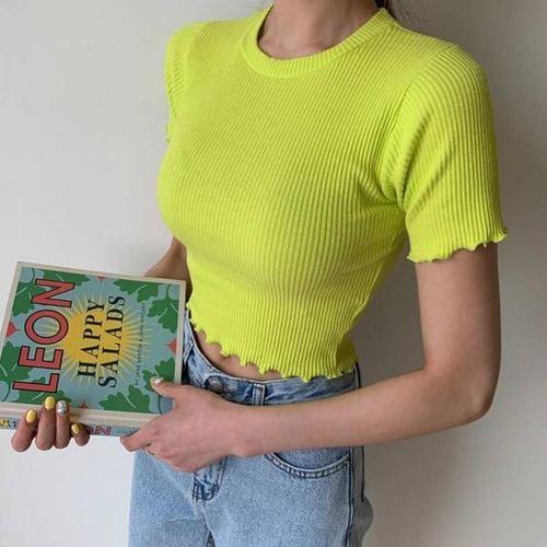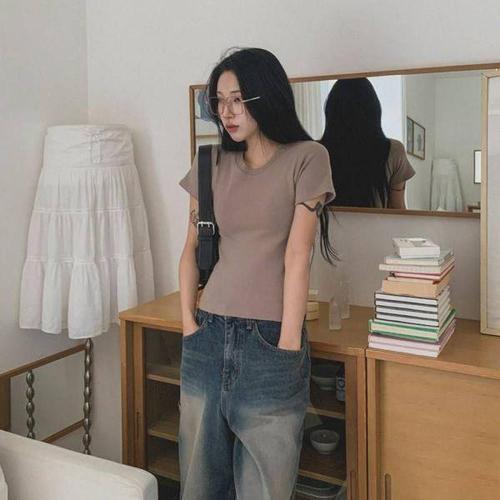 [에이치플러스몰]스판 여성후드티 반팔티 베이직 크롭맨투맨 온나