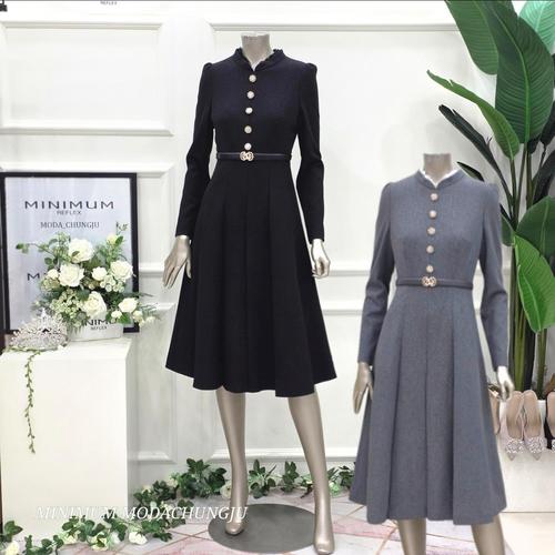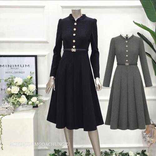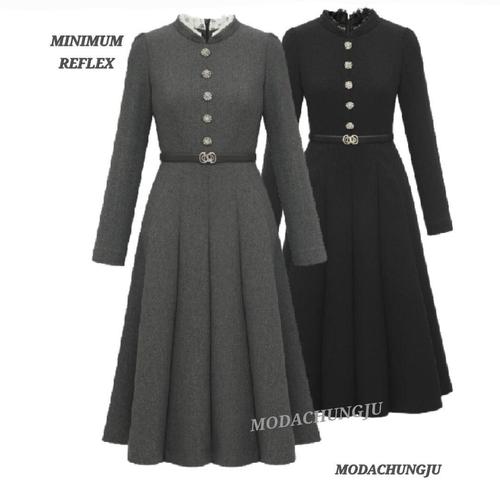 [미니멈]MD 레이스 배색 하프넥 셔링 플레어 원피스 MD MMZAAWO1150GY