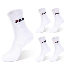 휠라 시그니처 더블 쿠션 미드 양말 5켤레, 화이트, 1세트