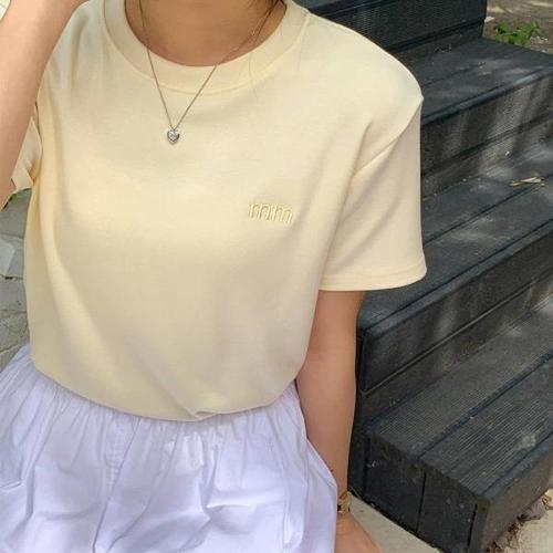[다잇템][다잇템] 여성 레이온스판 미니멀리즘 필기체 크로쉐 반팔티_23436712_588872