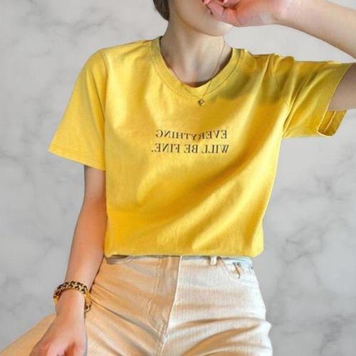 [다잇템][다잇템] 여성용 면원단 필기체 탱크 운동 라운드 반소매 티셔츠_22060899_588872