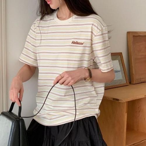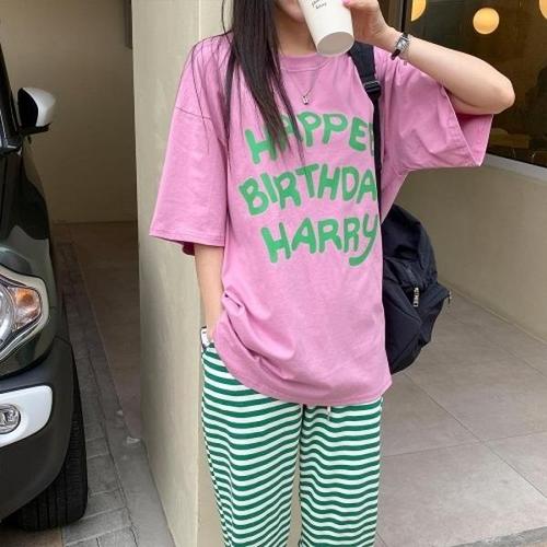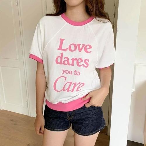[다잇템][다잇템] 여자 썸머 라글란 캐쥬얼 콘트라스트 필기체 반소매 티셔츠_13361053_588872
