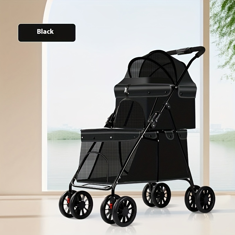 TEMU 경량 올테레인 더블 레이어 유모차 스타일 펫 카트 - 대형 캐노피, 잠금 가능한 바퀴 & 접이식 프레임 - 소형 강아지/고양이용 변환 가능, 더블 유모차 호환 (조립 도구 불필요) - 여행용|강아지유모차