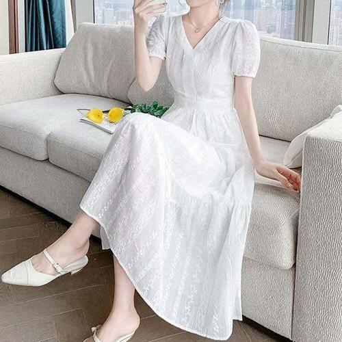 [셀럽하우스]봄 VOJE7780 여름 반팔 하객 화이트 롱원피스 20대여성