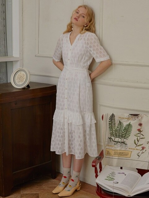 샐리 쉬폰 플라워 버튼 롱 원피스 I6A-COP002