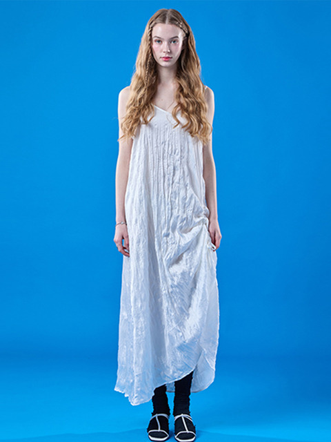 [콜릿] 레이어드 쿨링 쉬폰 마몽 셔링 스트랩 롱원피스 [WHITE]