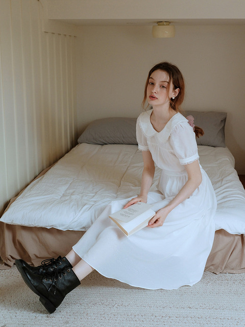 [쎄무아듀] Cest_White doll collar chiffon dress