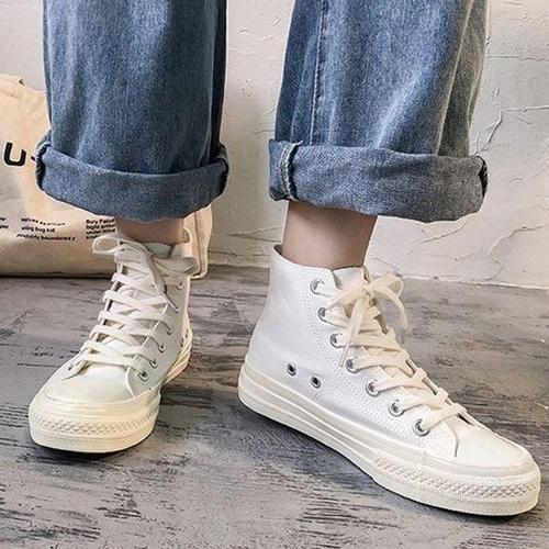 [셀러허브_여성트랜드패션]여자 로우 캔버스 올흰 통굽 스니커즈 하이탑 단화