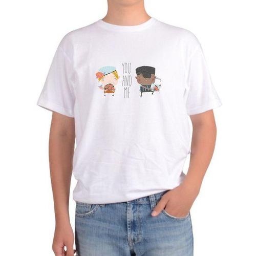 [에이치플러스몰]반팔 라운드티 유앤미 블랙 화이트 친구