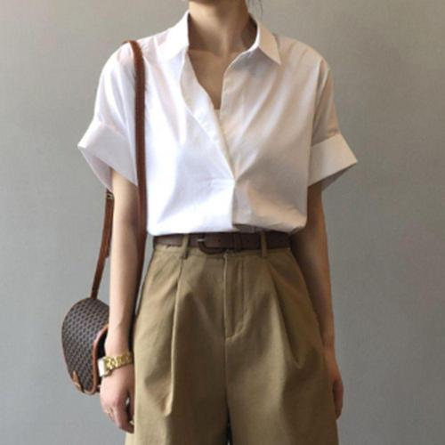 [셀럽하우스]흰색 DNPF5965 반팔 롤업 여성 여름 직장 정장 심플 반팔셔츠