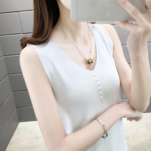 [셀럽하우스]화이트 IGAO2003 베이직 셔츠 니트 민 나시 소매