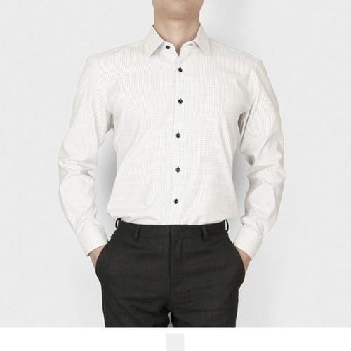 [에이치플러스몰]화이트 잔체크 와이셔츠