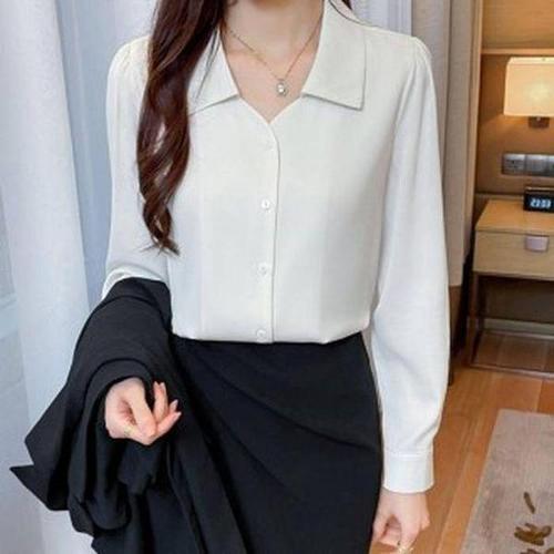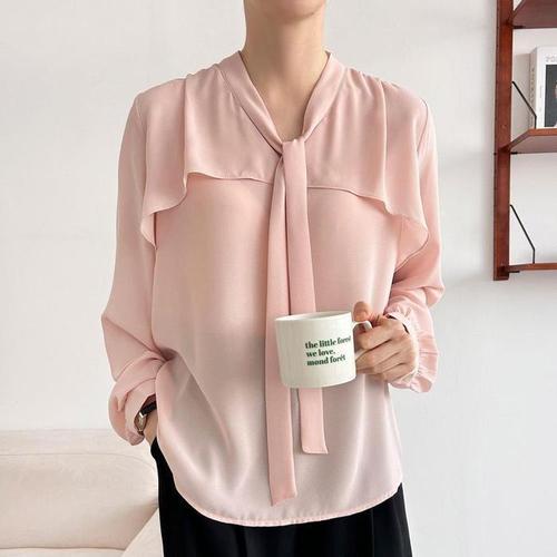[신상오픈런]넥타이 이중 플레어 여성 긴팔 쉬폰블라우스 흰셔츠 (29416349)
