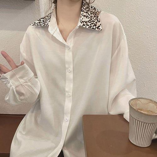 [셀럽하우스]호피패턴 RXEU3609 카라 블라우스 여유핏 베이직 흰셔츠