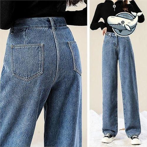 [에이치플러스몰]여성 히트인 기모 데님 팬츠 하이웨이스트 세미