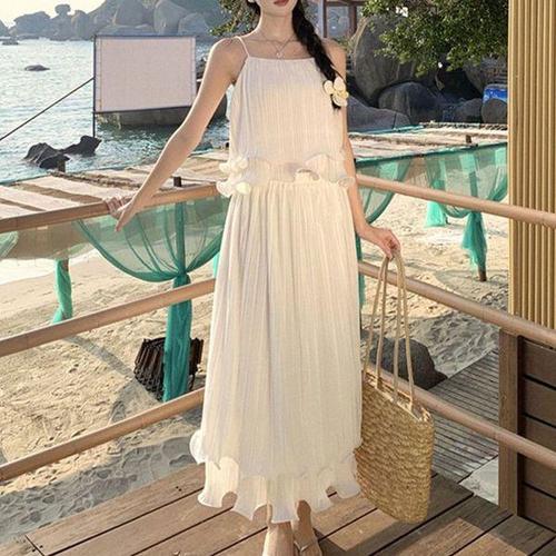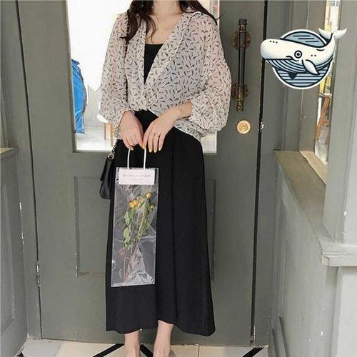 여름 간단하고 편안한 캐주얼 서스펜더 드레스 세트 패션 카디건 자켓 탑 슬림 롱 스커트 투피스 세트 여성