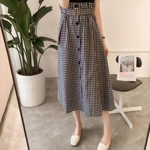 [에이치플러스몰]봄옷 체크 캐주얼 롱 스커트 필수템 반팔 투피스 세트