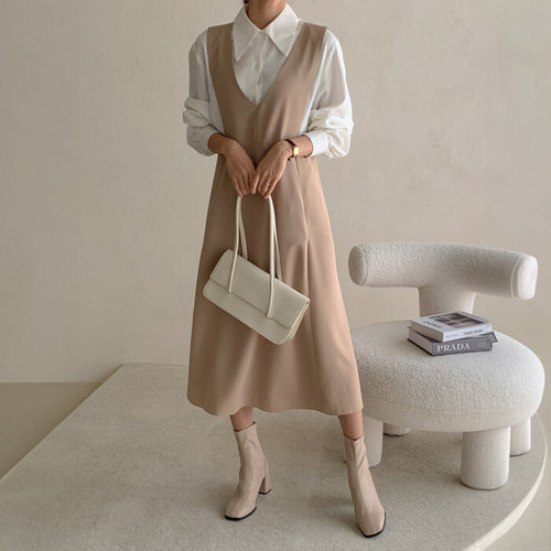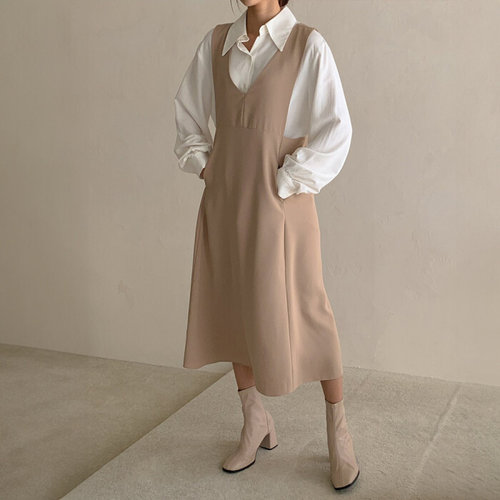나야홍 / 빅사이즈 510 딥브이포켓멜빵형원피스 DLTQ160
