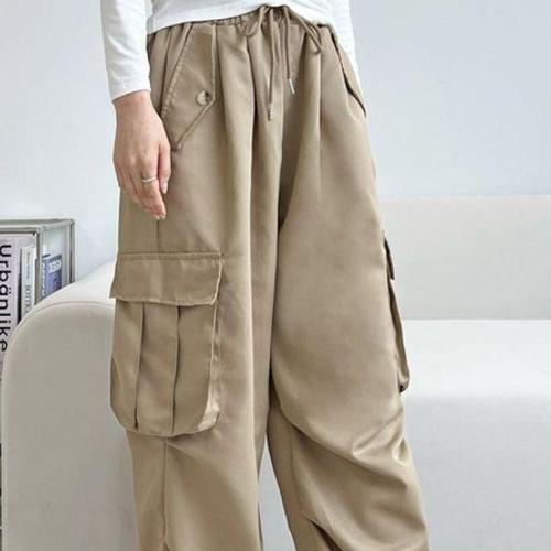 [에이치플러스몰]여성 무릎핀턱 카고포켓 슬랙스 와이드 팬츠 바지 DJJ1031