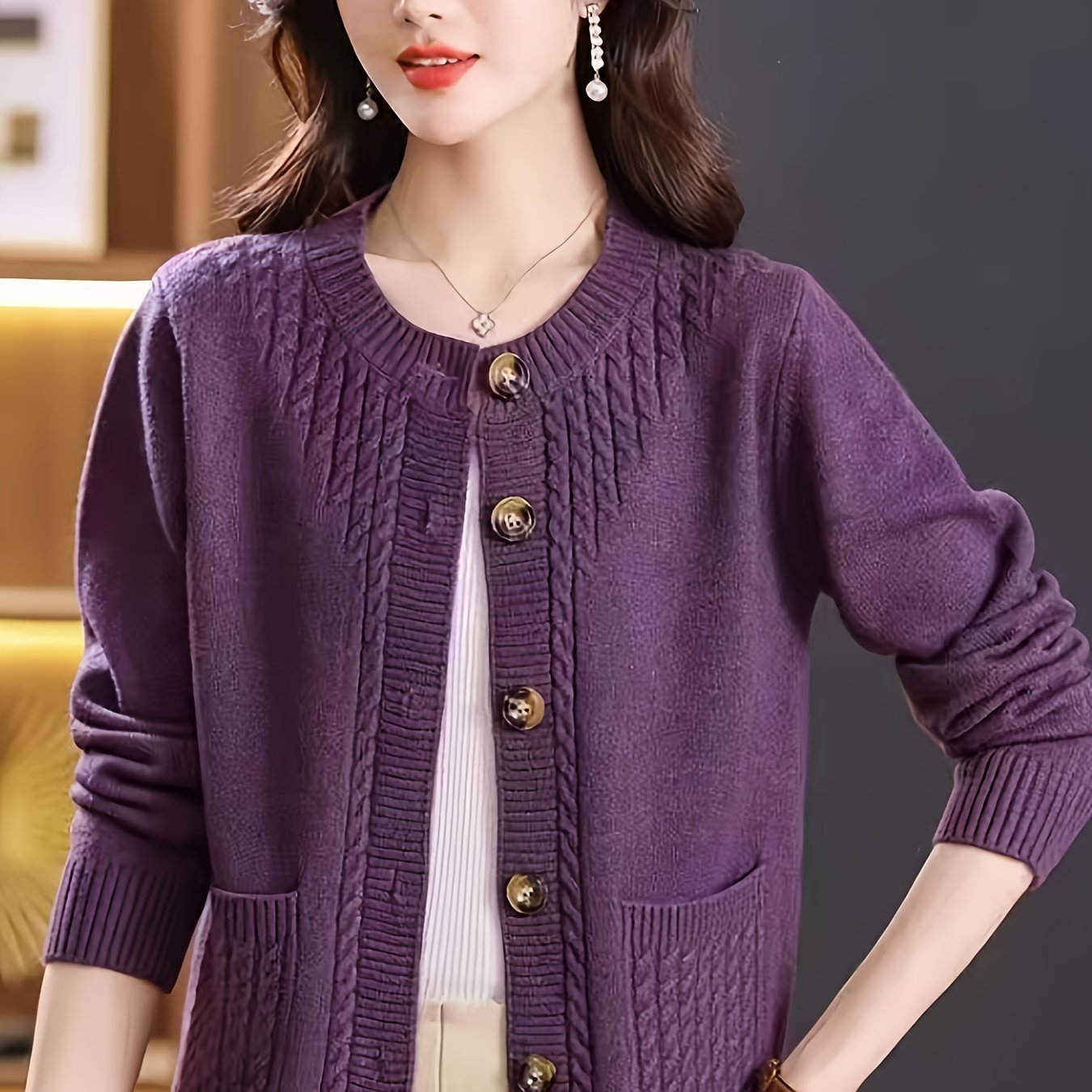 TEMU 새로운 가을/겨울 루즈 카디건, 트렌디한 라운드넥 빈티지 여성 스웨터 재킷, 레이어링에 완벽