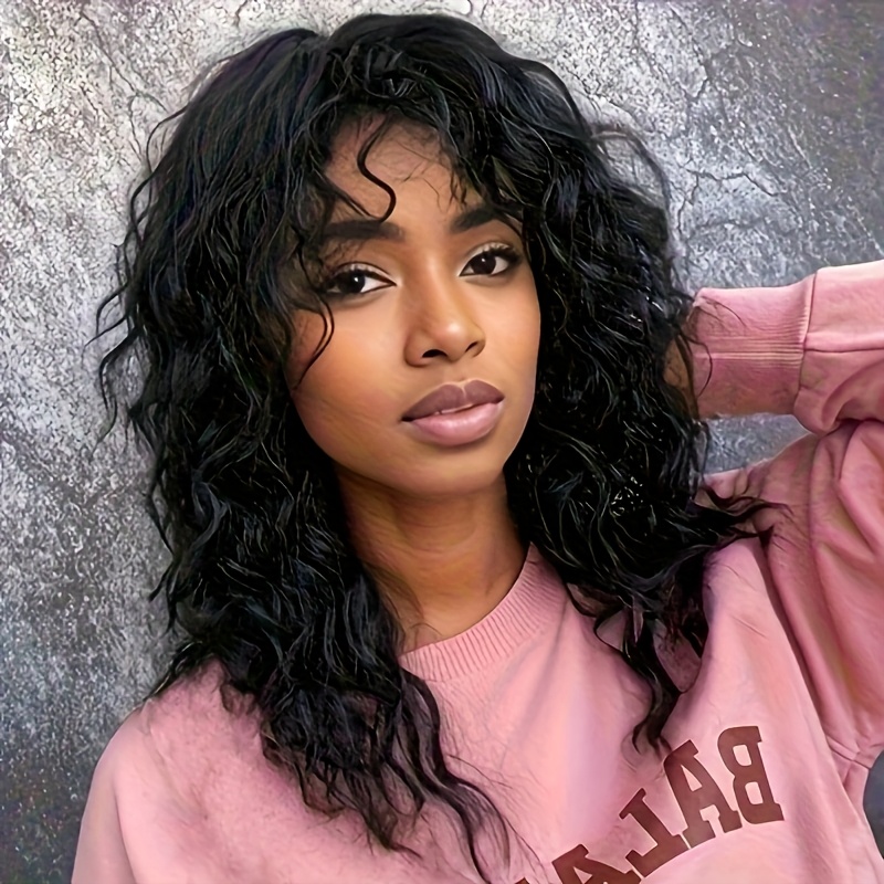 TEMU 앞머리 있는 회색 가발, 중간 길이 곱슬 머리, 합성 가발, 데일리 모임 및 할로윈 가발에 적합, 18인치