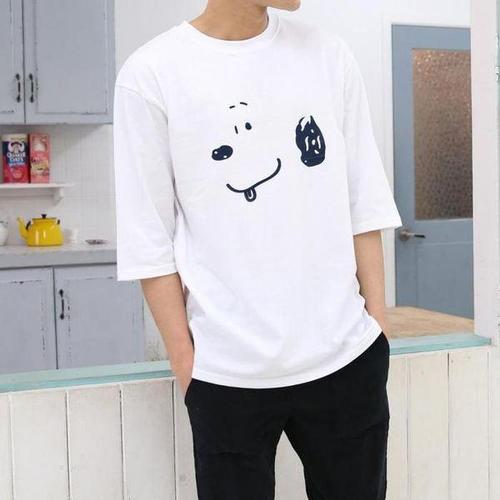 [셀러허브_여성트랜드패션]순면 여름반팔티 남여공용 멍뭉이 4XL 20수 티셔츠 롱반팔 면티 티셔츠 남자반..