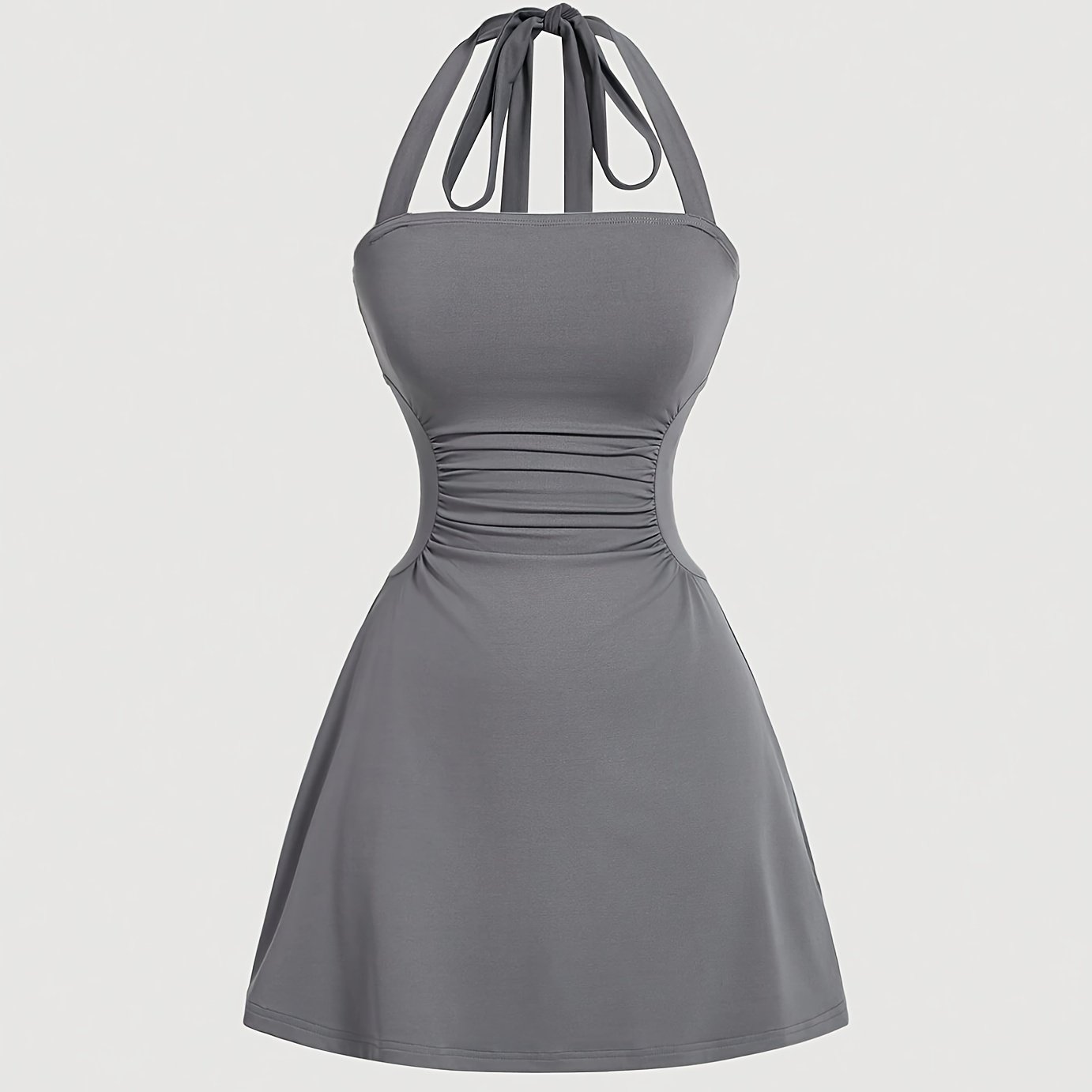 TEMU 세련된 단색 여성 드레스, 텍스처 V넥 디자인으로 몸매를 부드럽게 연출하며 허리 주름을 강조하는 A라인 실루엣으로 우아한 룩을 연출합니다.