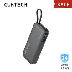 CUKTECH 쿡테크 55W 대용량 20000mAh 일체형 보조배터리 고속 충전 보조배터리 입출력 C타입 케이블/전력 표시/여행용 기내반입, 회색