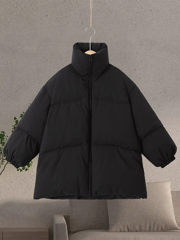 퍼프 스타일 오버사이즈 여성용 코튼 재킷 스탠드업 칼라 지퍼 솔리드 플러피 여성 코트 겨울 캐주얼 루즈 아우터웨어 여성용