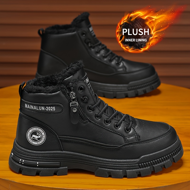 TEMU MAINALUN 남성용 헤비 벨벳 안감 겨울 부츠 - 레이스업 라운드 토, 빈티지 아이스 앤 스노우 부츠, 스케이트 느낌의 그립감, 가을/겨울용 따뜻한 캐주얼 신발, 스노우 부츠, 스노우 스포츠 신발.