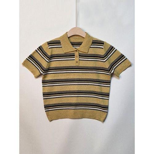[샵앤]국산 여성 카라넥 단가라 반팔 니트 티셔츠 21DS-WKN-4971-머스터드