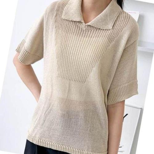 [샵앤]국산 여성 카라넥 단가라 반팔 니트 티셔츠 21DS-WKN-4971-오트밀