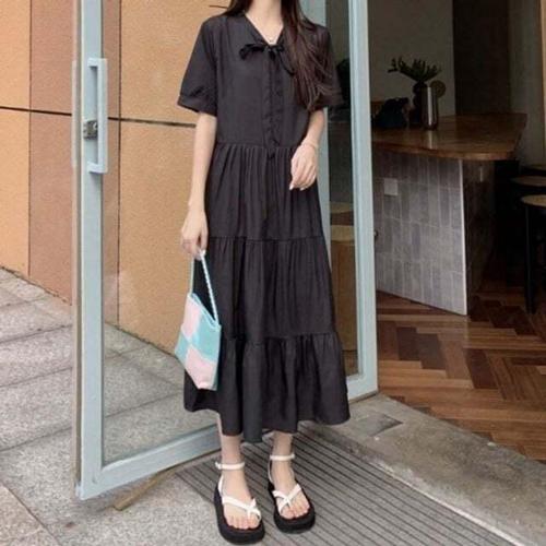 [셀럽하우스]반팔 FXUS9112 리본 캐주얼 원피스 3단 필수템 캉캉 캐주얼 여